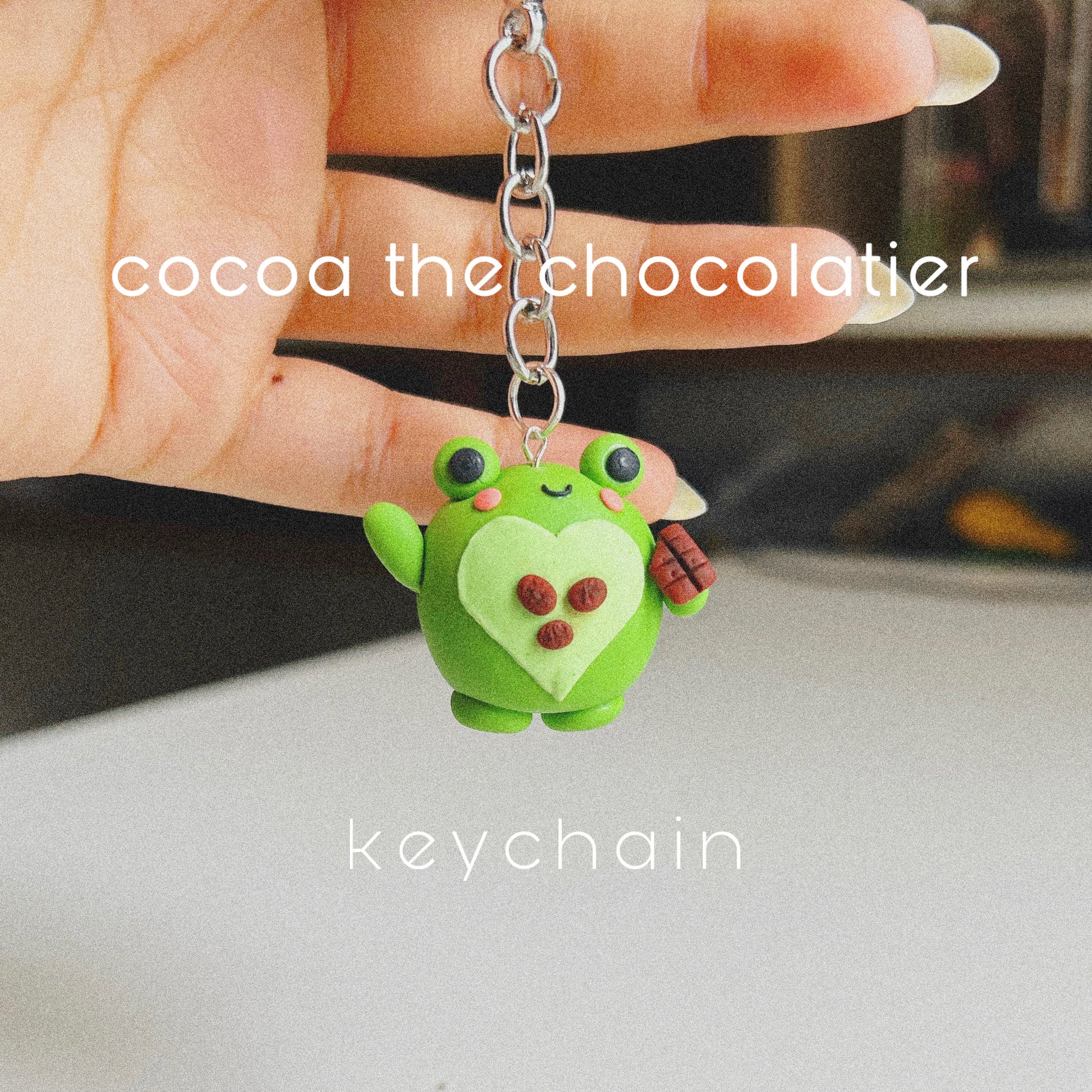 - Treat your Cocoa keychain gently to avoid impacts that could cause damage. All clay keychains are carefully hand-crafted. To clean, simply wipe with a damp cloth.