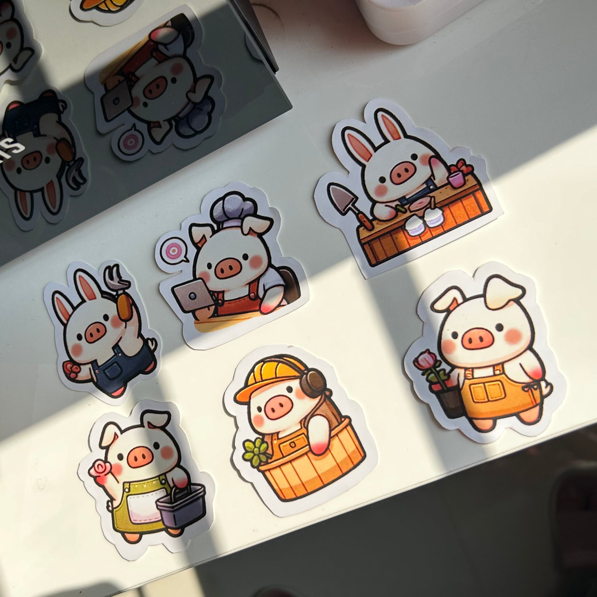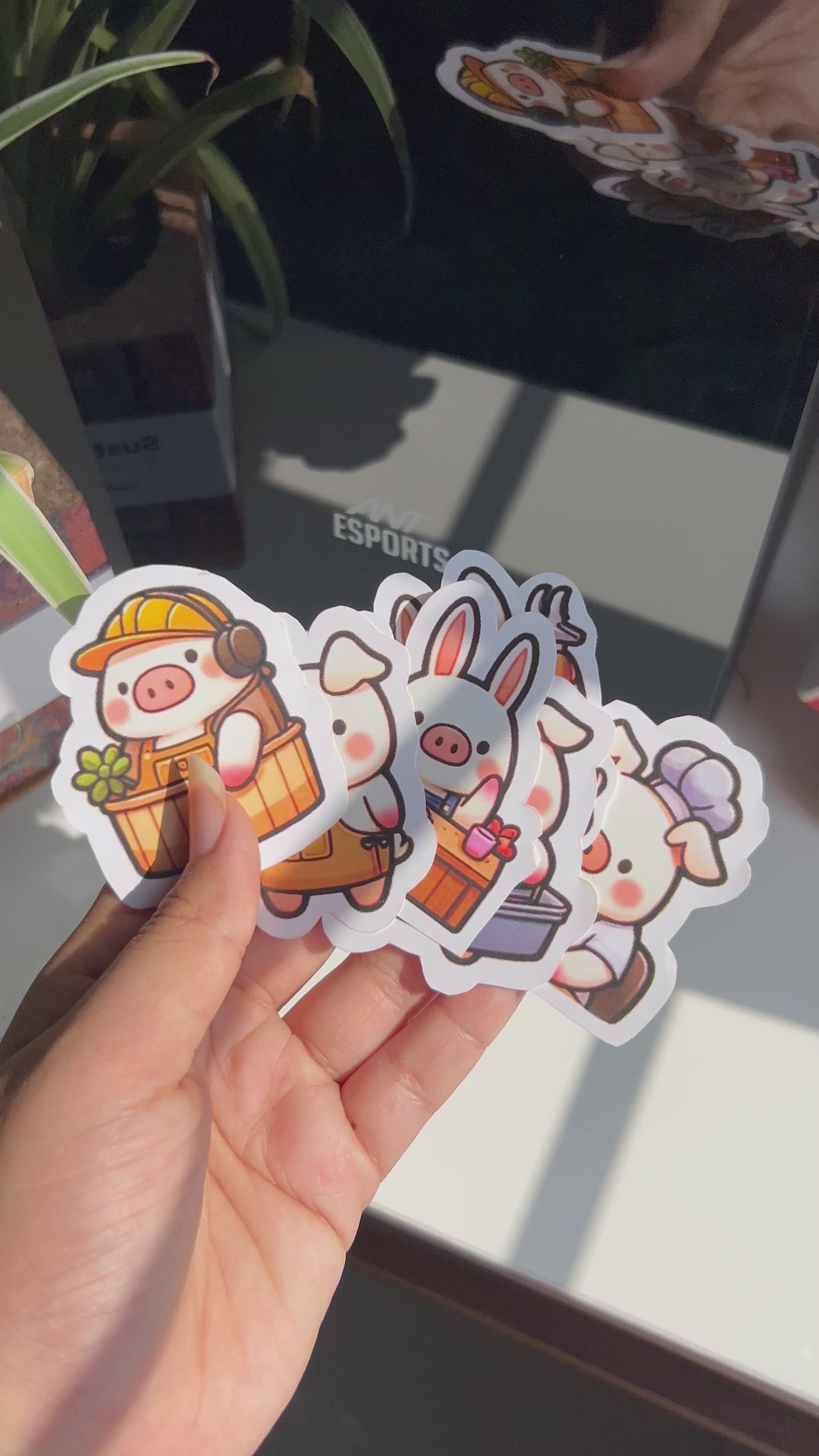 Snuggle into sweetness with Shray Archy's exclusive sticker set featuring the charming Snuggle Snout characters, a delightful blend of pig and rabbit charm.