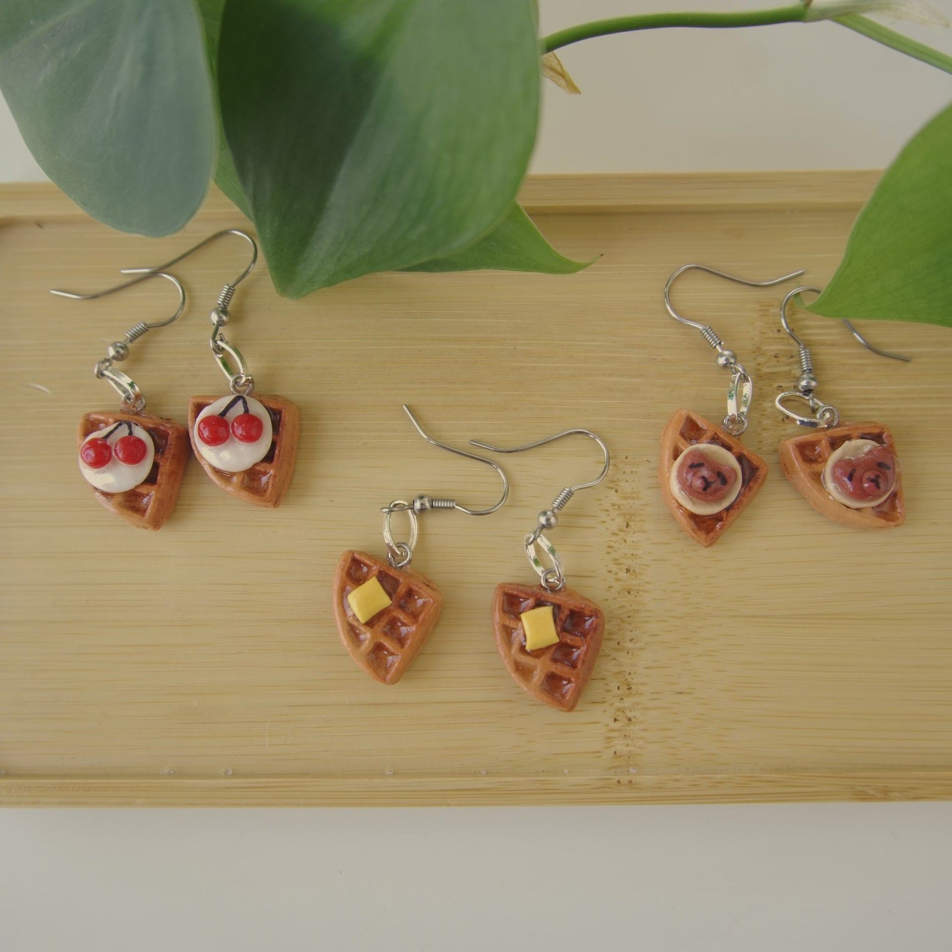 - Each waffle charm measures approximately 1.5 × 1.9 cm.